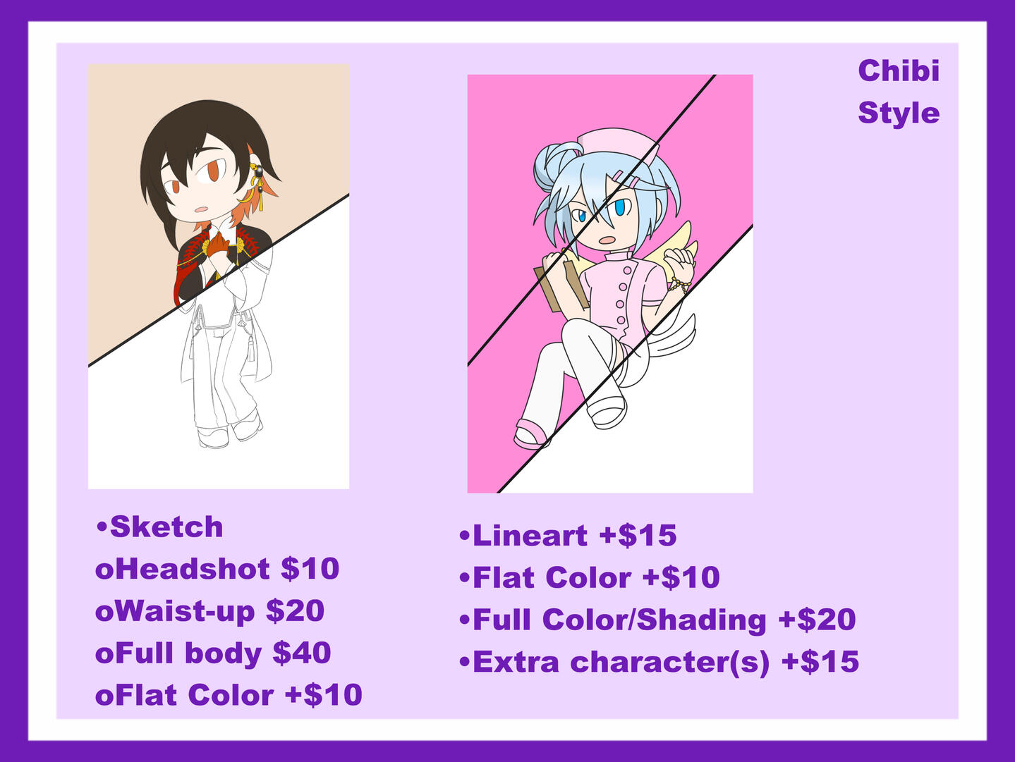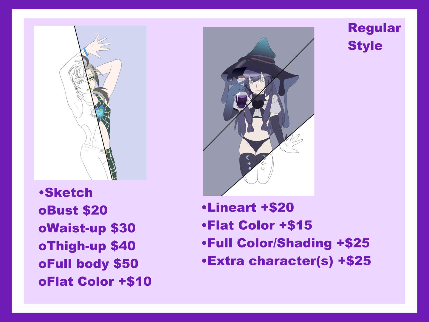 - I will provide an invoice and a starting sketch before payment is required